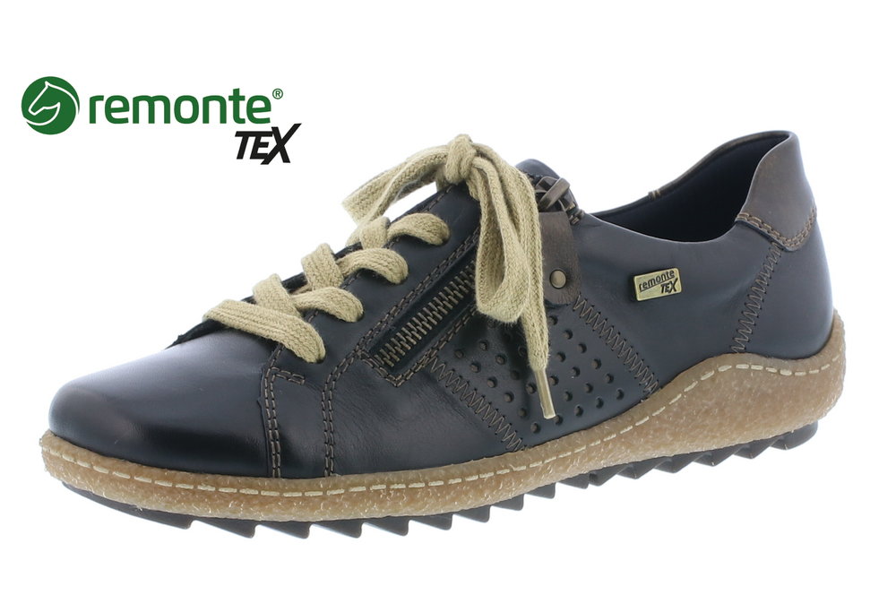 Dieser schwarze Remonte Sneaker aus Leder mit Reißverschluss als Einstiegshilfe ist mit der Remonte-Tex-Membran, welche den Schuh atmungsaktiv und wasserabweisend macht, ausgestattet. Das Wechselfußbett bietet Ihnen die Möglichkeit, dieses durch individuelle Einlagen auszutauschen.