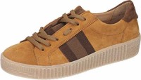 Sneaker in der Farbe, braun curry. Innen ist der Schuh mit chromgegerbtem Leder ausgestattet. Die Decksohle ist aus echtem Leder und bietet ein optimales Fußklima. Der Absatz ist durchgehend flach. Die abriebfeste Laufsohle wird Sie viele Jahre erfreuen. Der Artikel verfügt über einen Schnürverschluß. Die schlanke Spitze des Schuhes verleiht ihm ein modisches Aussehen. Der Schuh hat eine herausnehmbares Fußbett und ist somit ideal für eine Einlagenversorgung geeignet. Die Schuhe sind ideal für die Freizeit können dadurch ohne Probleme den ganzen Tag bequem getragen werden.