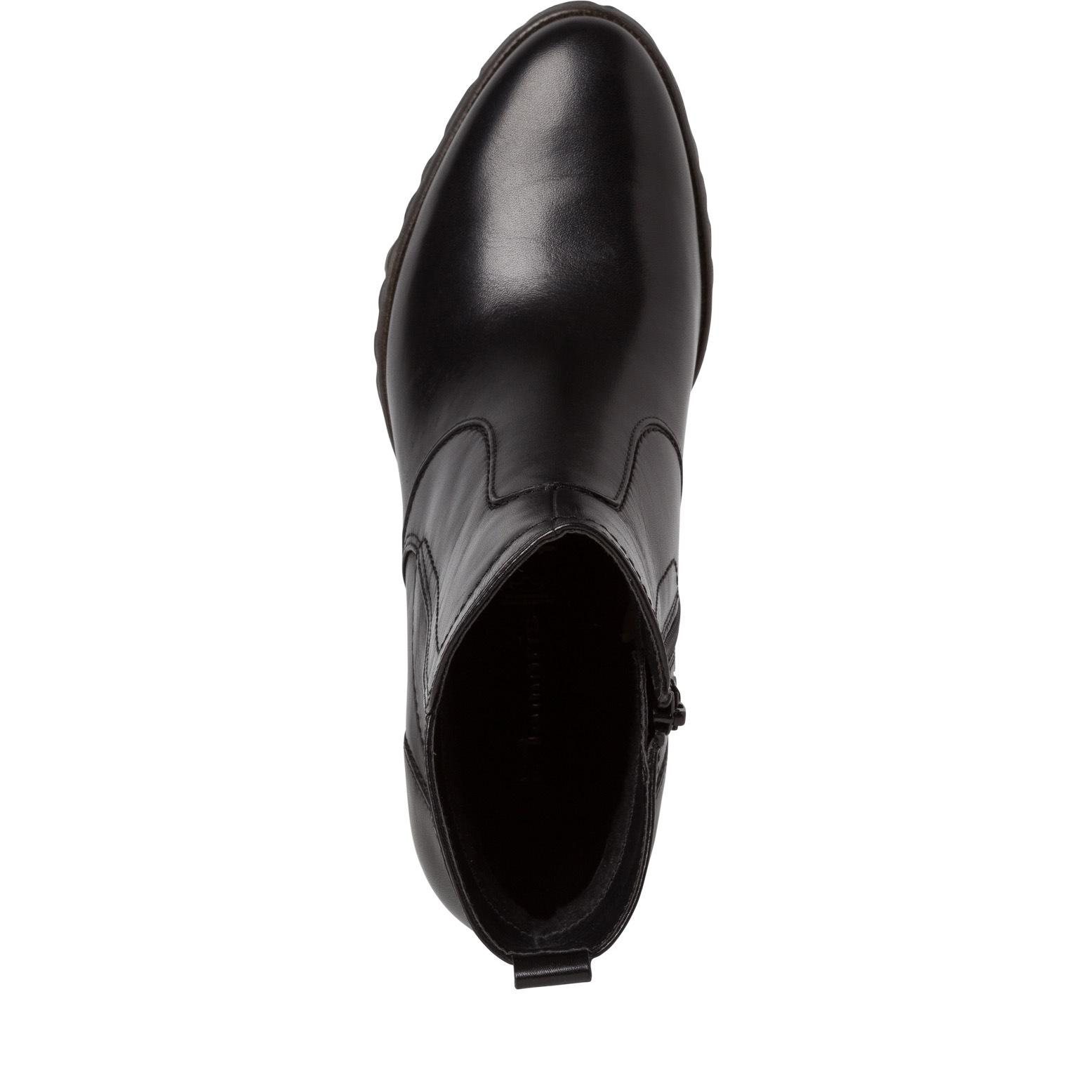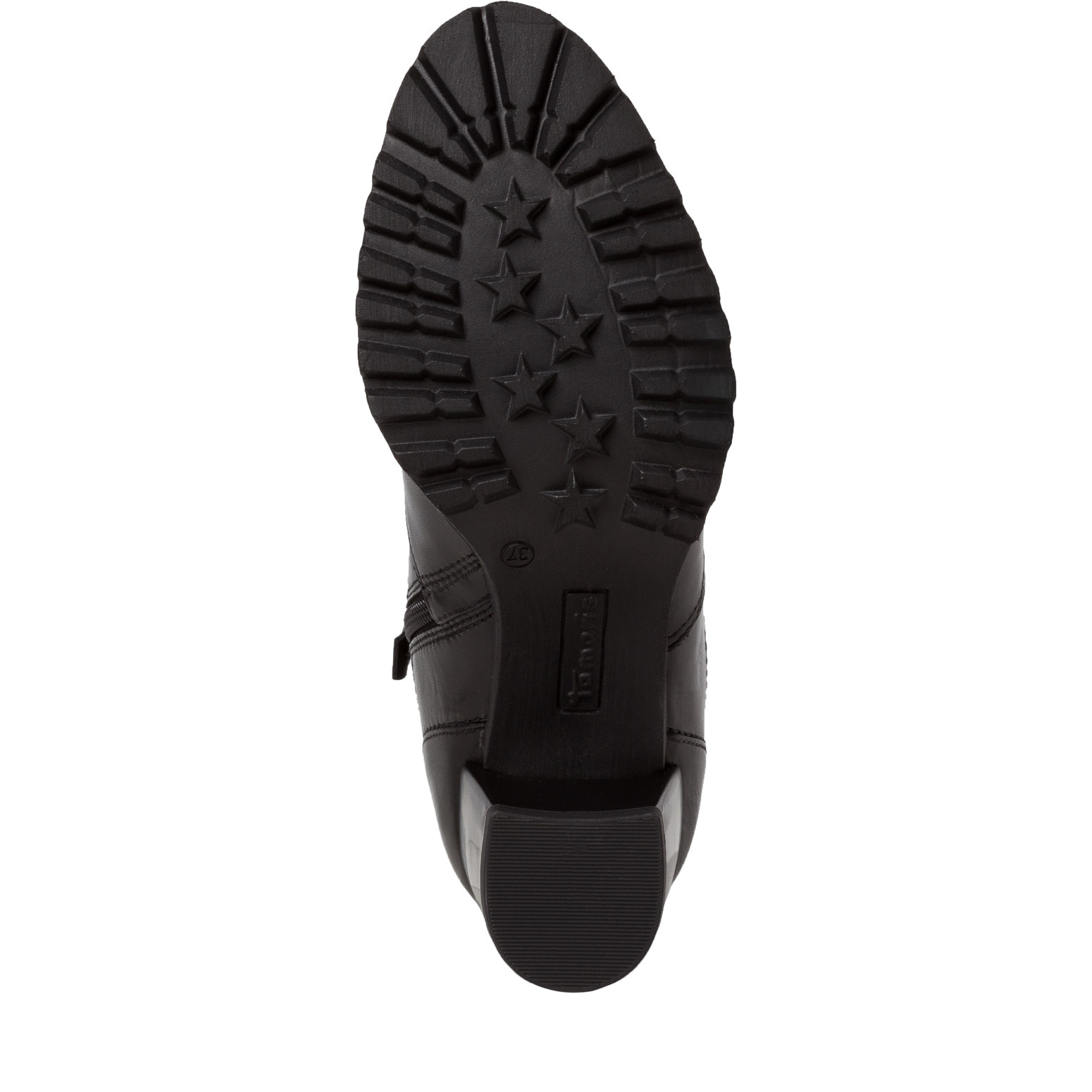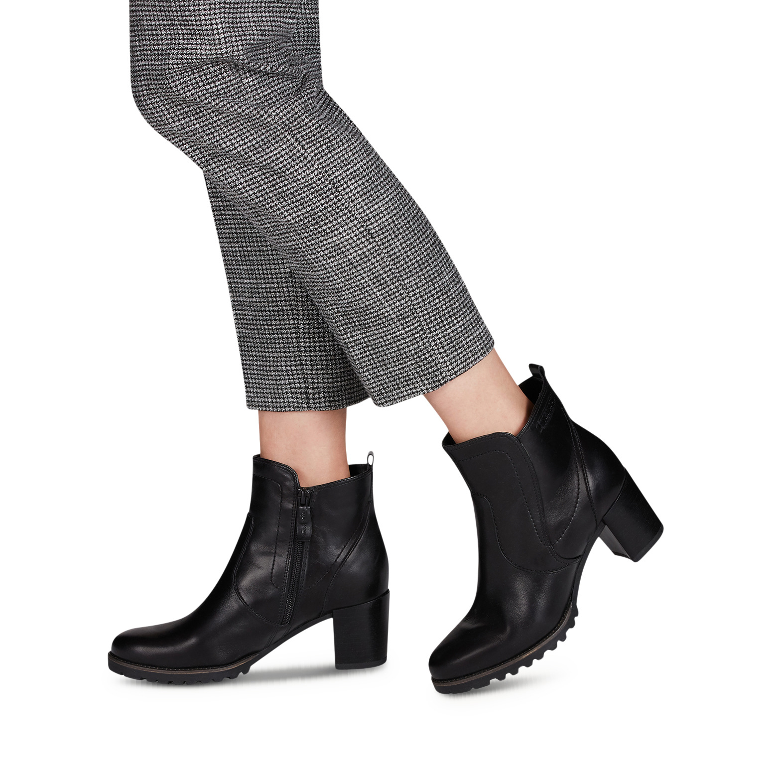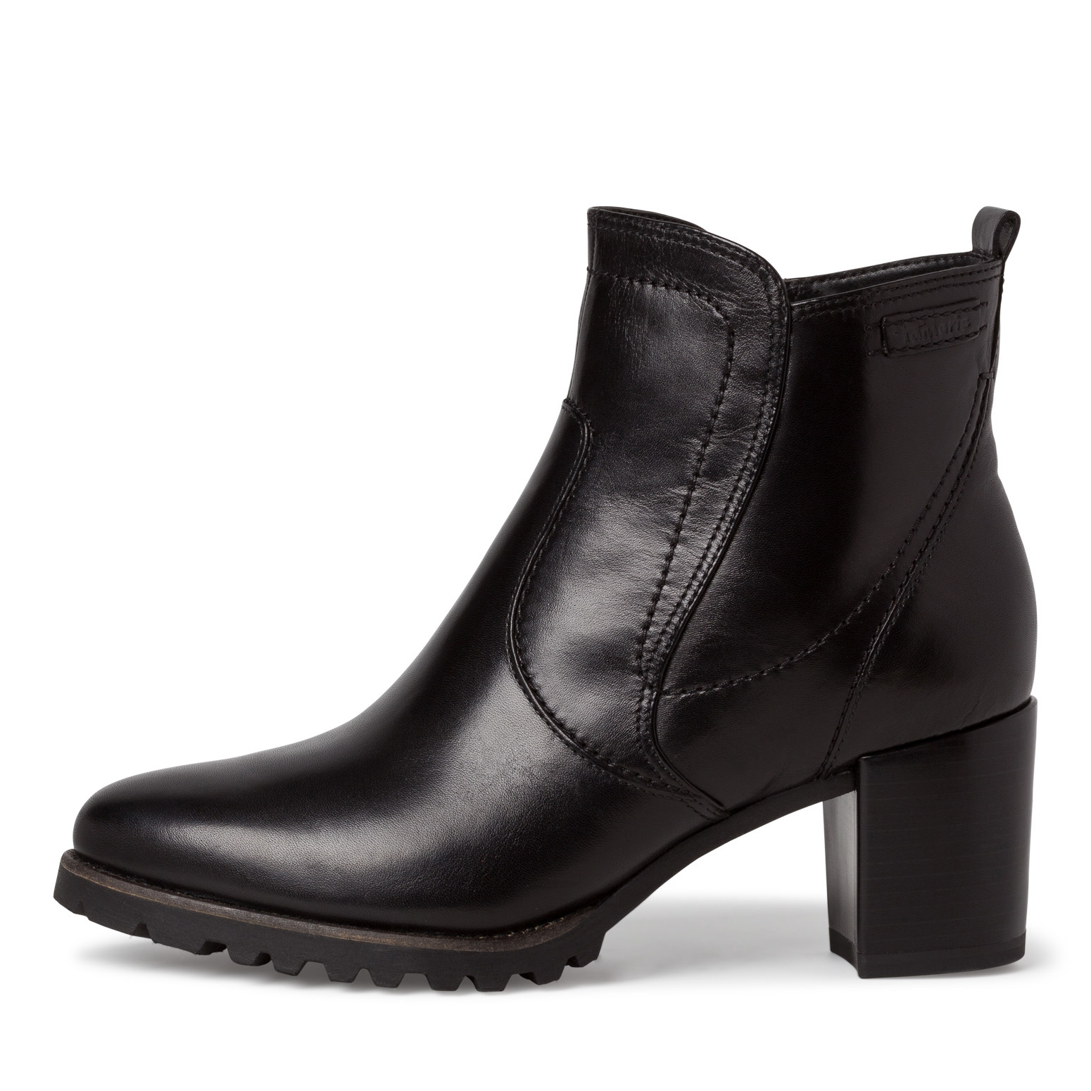 Dieser Stiefel von Tamaris sieht nicht nur modisch aus, er ist auch hochwertig verarbeitet. Das pflegeleichte Obermaterial ist Leder. Gerade für anstrengende Business-Tage, an denen man den ganzen Tag auf den Beinen ist, sind Schuhe mit Blockabsatz unersetzlich. Dank der vielen verschiedenen Varianten und Modelle gibt es auch zahlreiche Kombinationsmöglichkeiten. Egal, ob du lieber casual in Jeans unterwegs bist oder am Liebsten elegante Röcke mit schicken Blazern trägst, diese Schuhe passen dazu. Die innovativen Technologien Anti-Slide und Anti-Shokk sorgen für ein rundum gutes Laufgefühl. Anti-Slide gibt sicheren Halt dank eines rutschfesten Absatzes während Anti-Shokk mit einem Stoßdämpfer im Absatz für eine angenehme Schrittdämpfung sorgt. Das weiche Fußbett passt sich der individuellen Fußform an und sorgt für optimalen Tragekomfort.